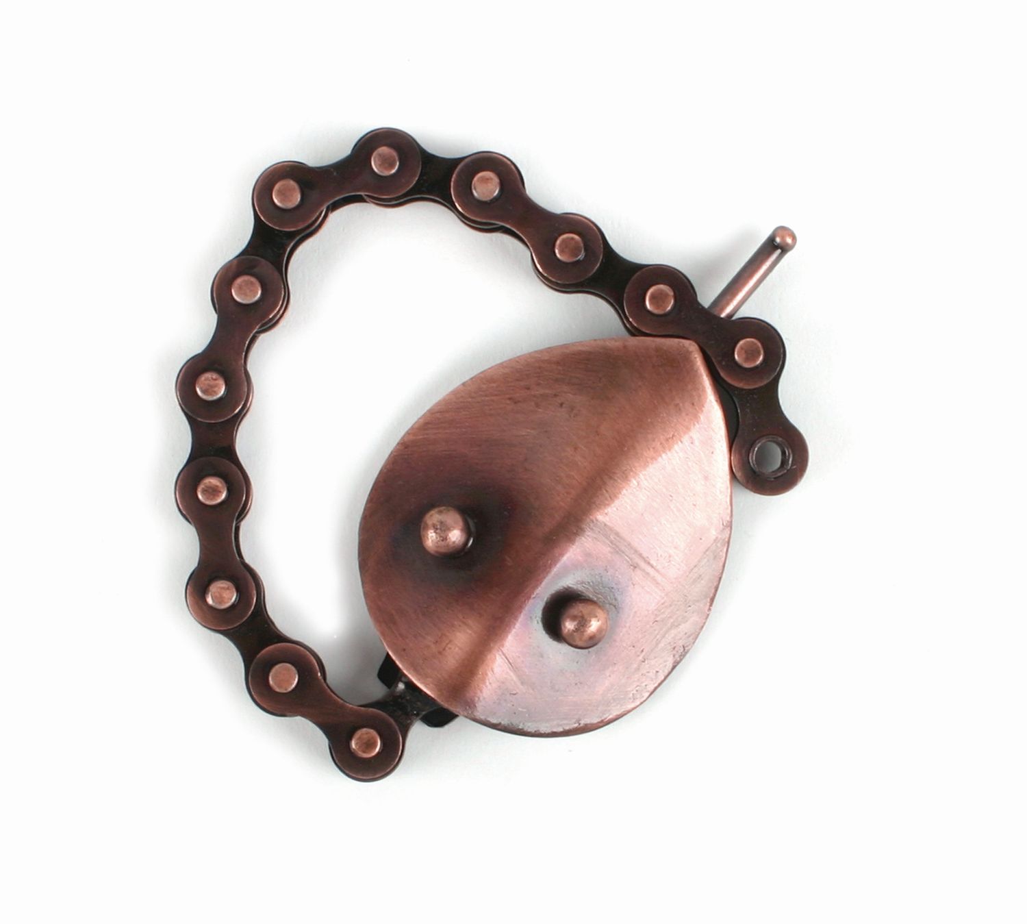 recycelte Fahrradkette, Eisen, Kupferbeschichtung, 24 cm