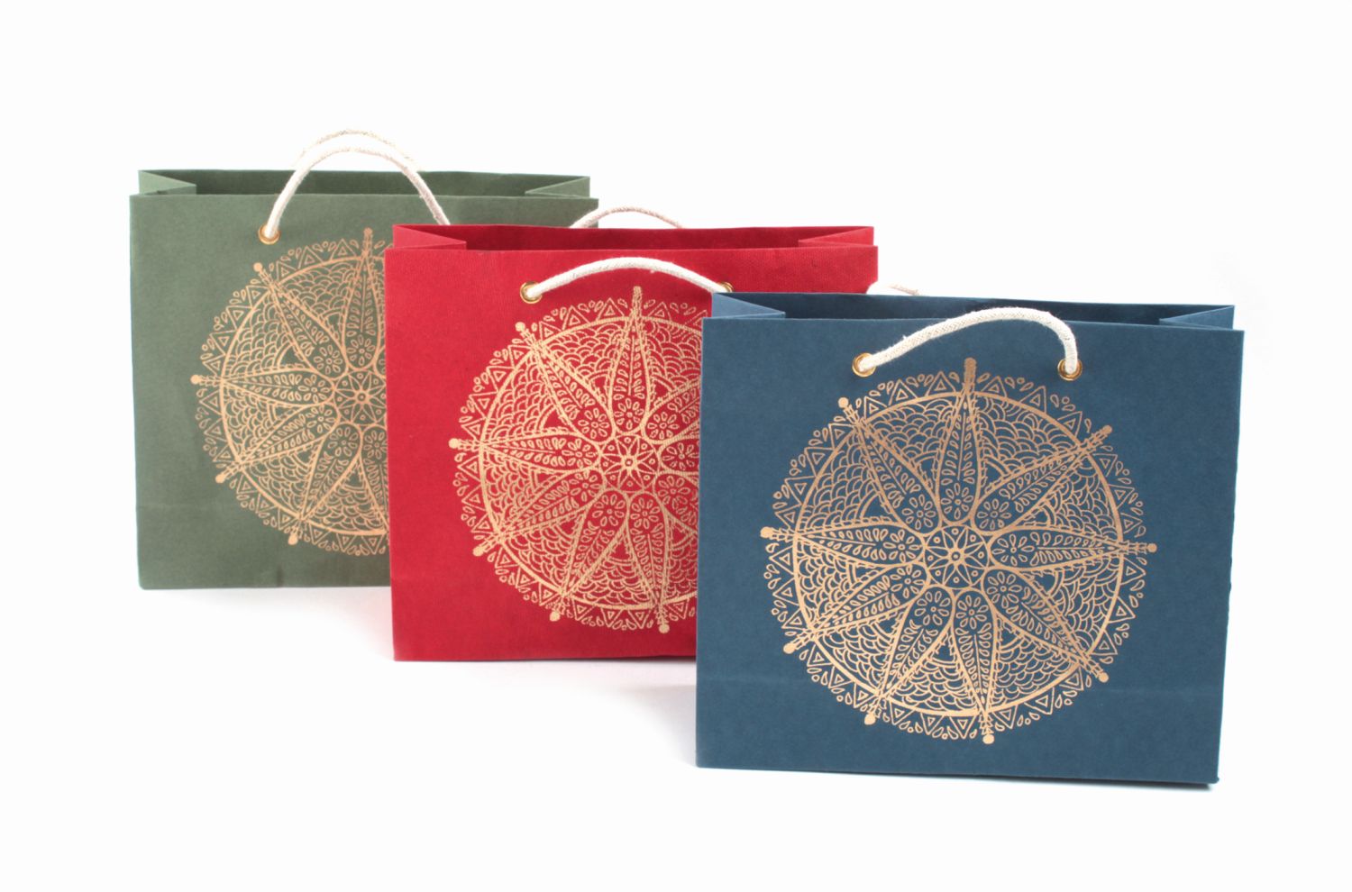 handgeschöpftes Papier, grün, rot, blau, 20 x 7 x 17,5 cm