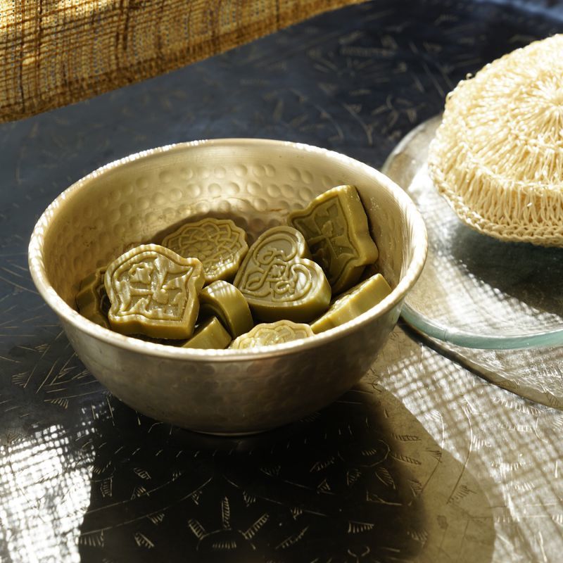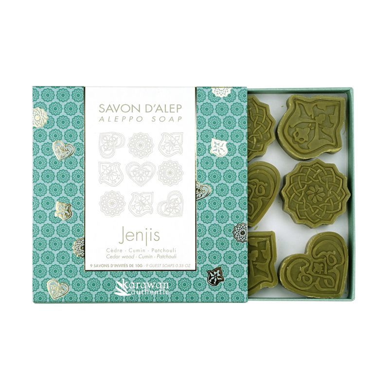 95% Olivenöl-Seife parfümiert mit ätherischen Ölen und Pflanzenextrakten. Ein Rendezvous zwischen der Aleppo-Tradition und den Künsten der südfranzösischen Parfümstadt Grasse.