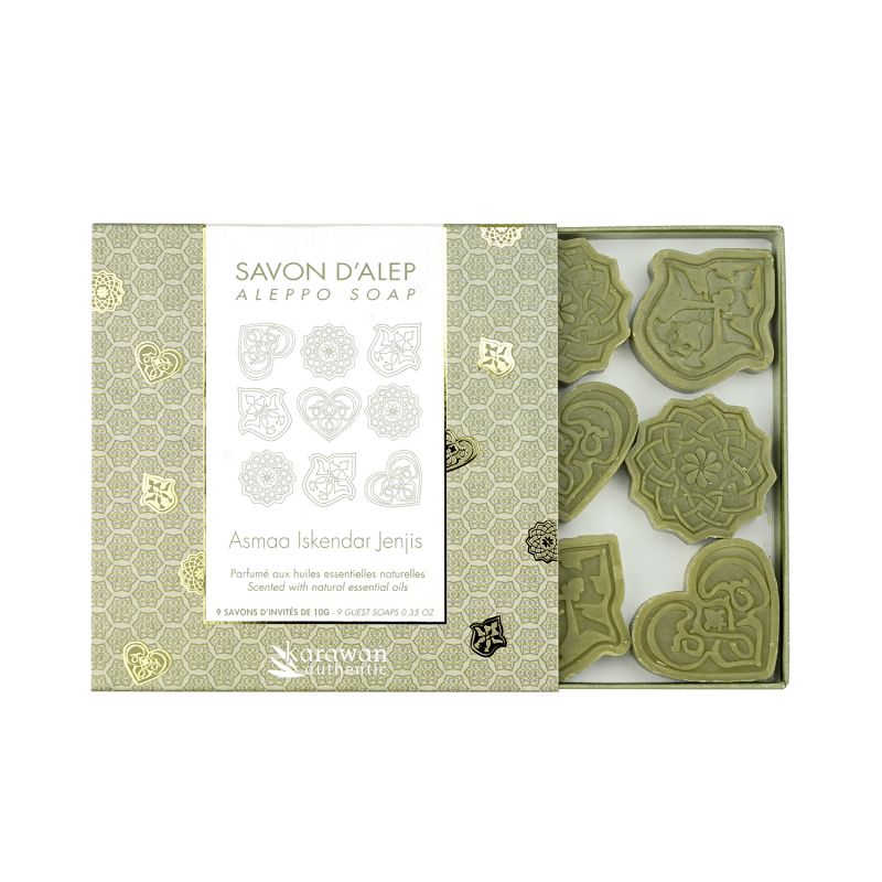 95% Olivenöl-Seife parfümiert mit ätherischen Ölen und Pflanzenextrakten. Ein Rendezvous zwischen der Aleppo-Tradition und den Künsten der südfranzösischen Parfümstadt Grasse.