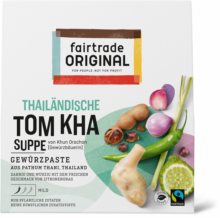 Zitronengras (19,6%), Galgant (19,6%), Schalotten (15,7%), Rohrzucker, Tamarindepaste (11,2%), Salz, grüne Chilischoten (5,5%), Knoblauch (3,9%), Koriander (1,7%), Kaffernlimette (1,1%), rote Chilischoten, Reisessig (Wasser, Naturreis). Zitronengras/Galgant/Schalotten/Rohrzucker/grüne Chilischoten/Knoblauch/rote Chilischoten/Reis: nach Fairtrade-Standards