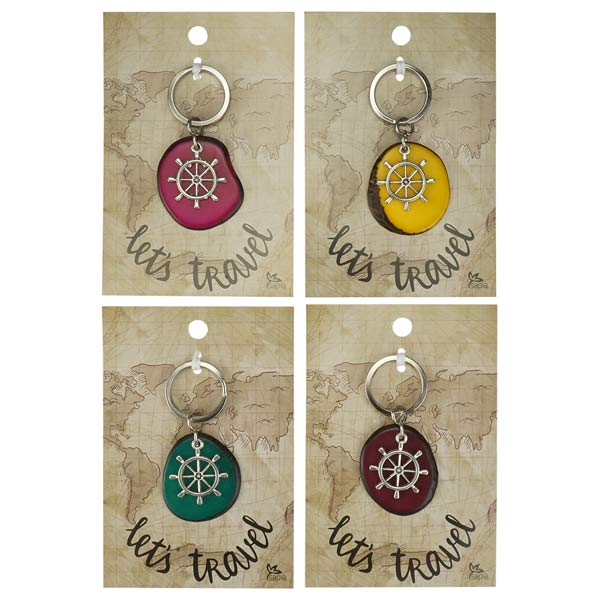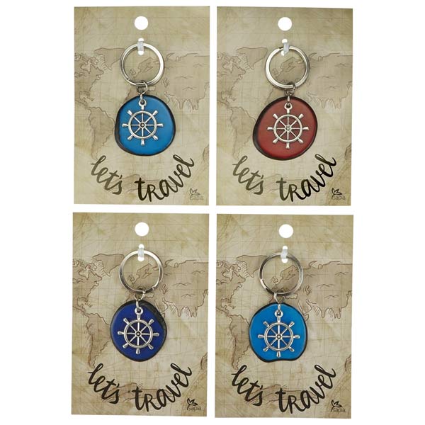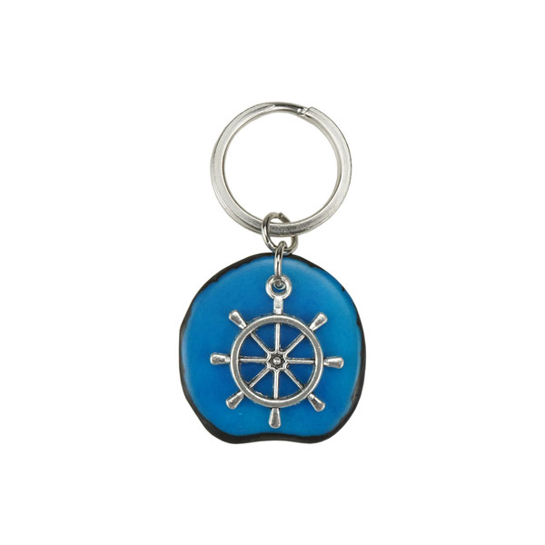Schlüsselanhänger aus pflanzlichem Elfenbein (Samen der Tagua-Palme) mit Steuerrad-Anhänger in verschiedenen Farbvarianten.