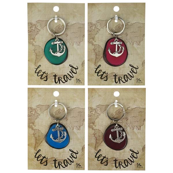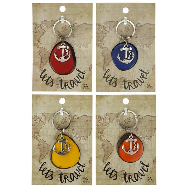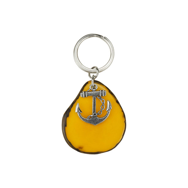Schlüsselanhänger aus pflanzlichem Elfenbein (Samen der Tagua-Palme) mit Steuerrad-Anhänger in verschiedenen Farbvarianten.