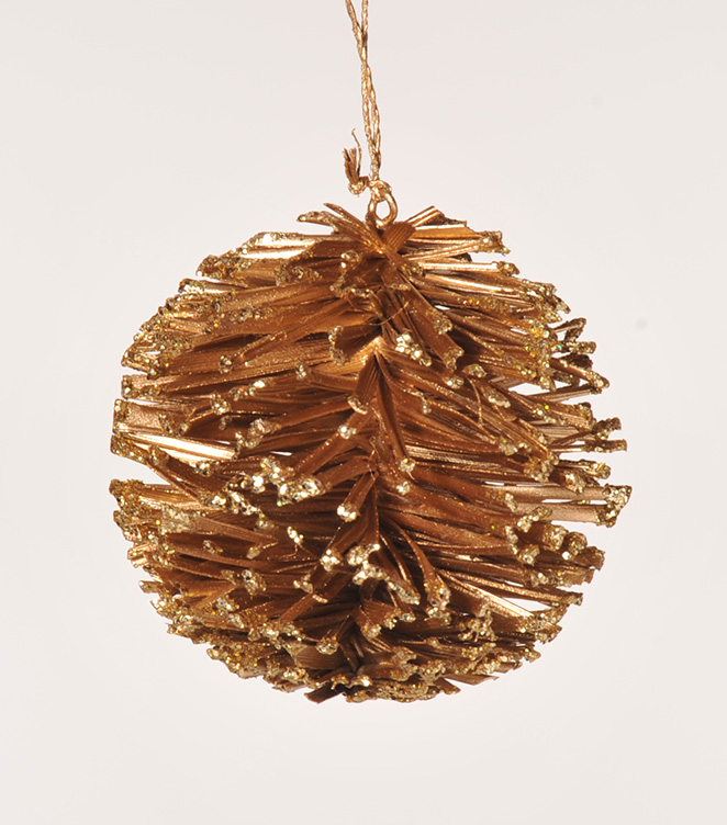 ANHÄNGER Kugel golden Abaca mit Glitzer