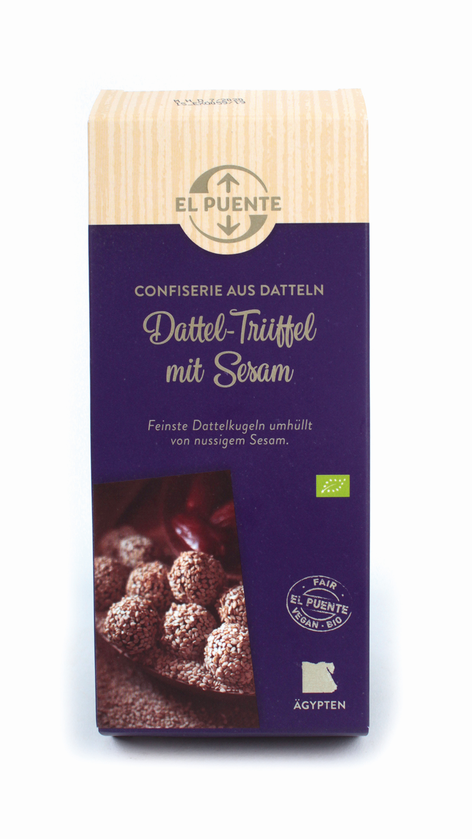Feinste Dattelkugel umhüllt von nussigem Sesam.