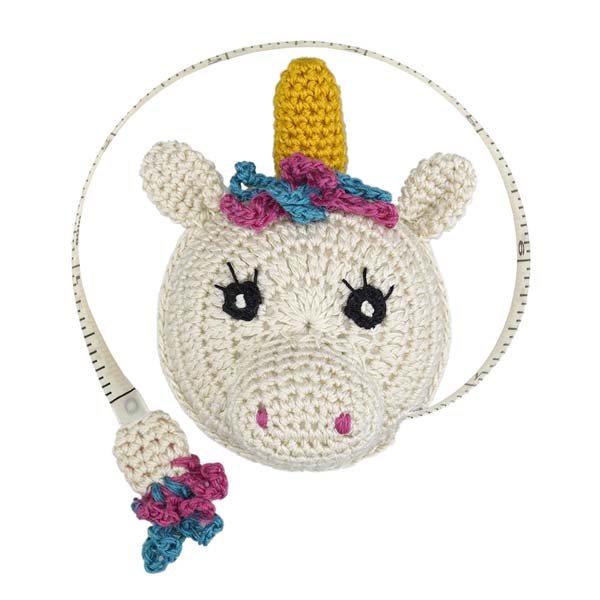 Fantasievoller kleiner Helfer im Haushalt und bei Handarbeiten, dieses zauberhafte Einhorn hat ein Rollband im Kopf, das sich durch Zug am Schwanzende ausziehen lässt.
