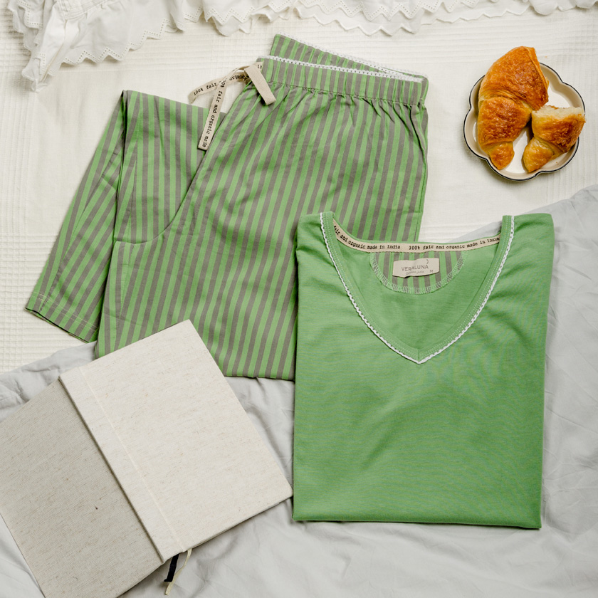EAN: 4013320045176 Herkunft: Indien Importeur/Lieferant: GEPA - The Fair Trade Company Empfohlener Verkaufspreis: € 24,50 brutto Artikel-Listen: Weitere Informationen: 100 % Bio-Baumwolle, Oberteil in Single-Jersey Qualität, Hose aus fein gewebtem Stoff, 100% Bio-Baumwolle von unserem GOTS-zertifiziertem Handelspartner Rajlakshmi, verpackt im Geschenkbeutel aus Stoff im Wellen-Print der Pyjamahose, unifarbenes Tanktop mit breiten Trägern, Hose mit geradem Bein, dezente Verzierung am Hosenbund, stoffbezogener Gummibund, zusätzliches Zugband