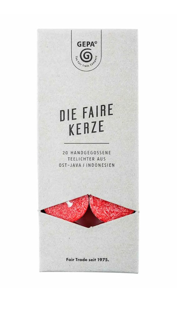 100 % Palmwachs, handgegossen, Brenndauer ca. 5 Stunden, durchgefärbt, zertifiziert