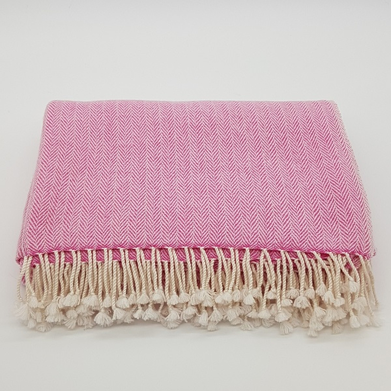 Wolldecke mit Fischgrätenmuster - rosa/weiß