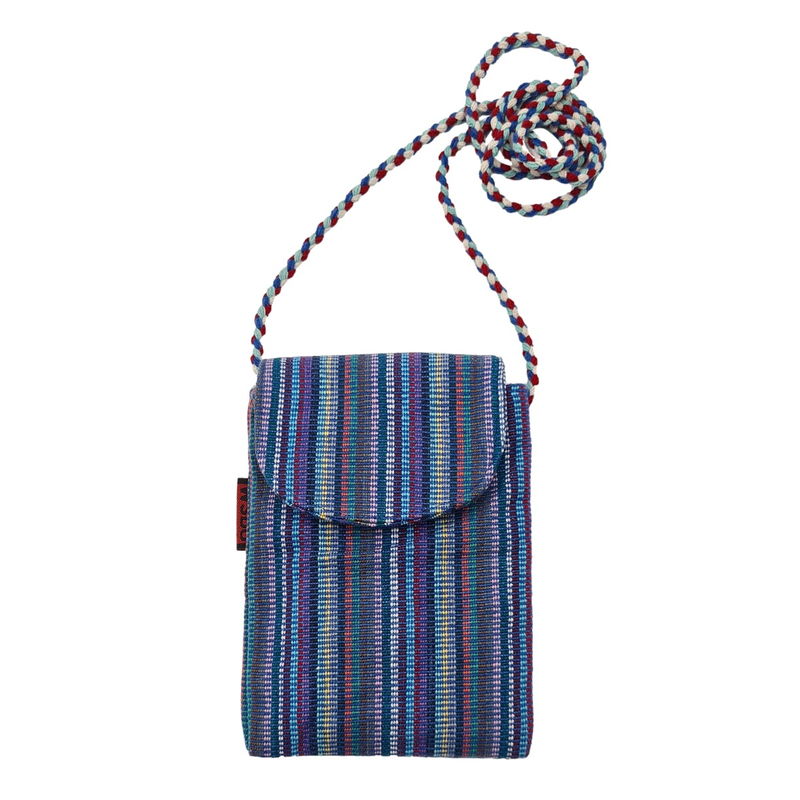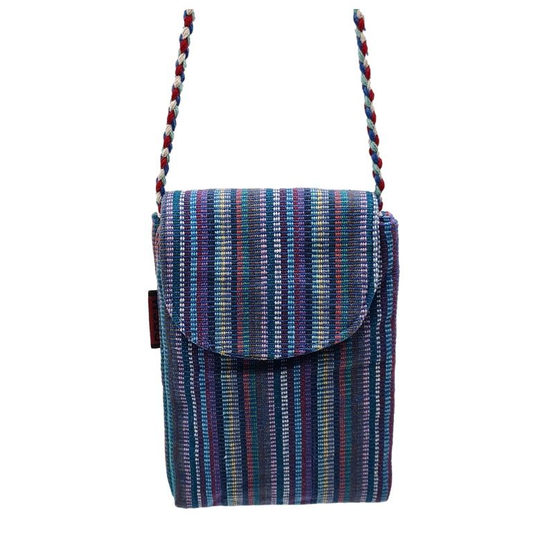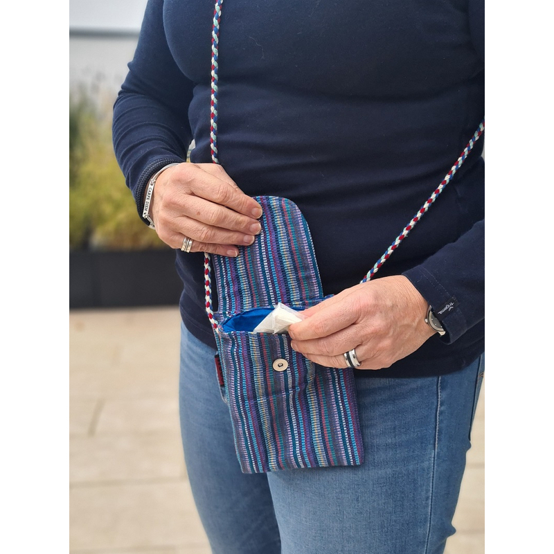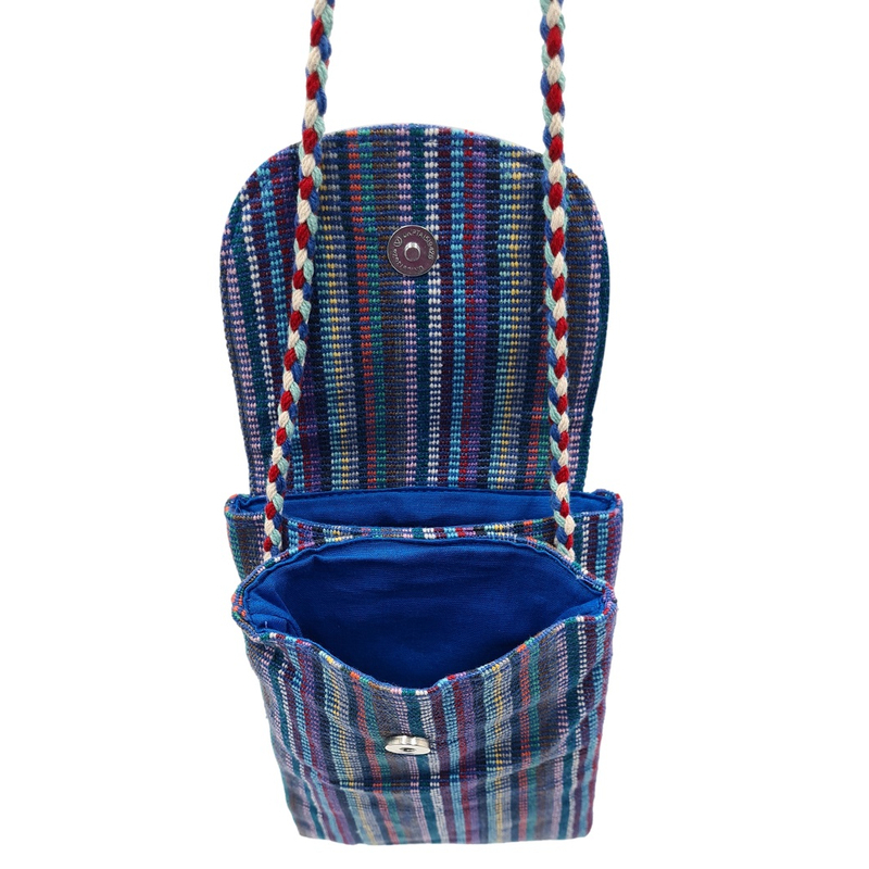 Kleine Crossbody Tasche aus handgewebter Baumwolle mit 2 gefütterten Innentasche und Druckknopf.