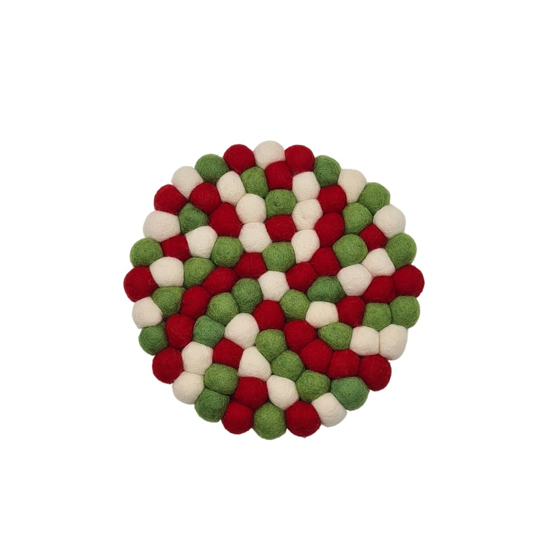 Filz Untersetzer Rund dicke Kugeln Rot/Weiß/Grün
