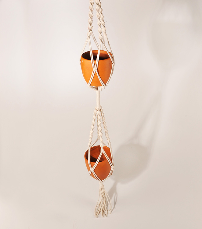 BLUMENAMPEL geknüpft f.2 Töpfe