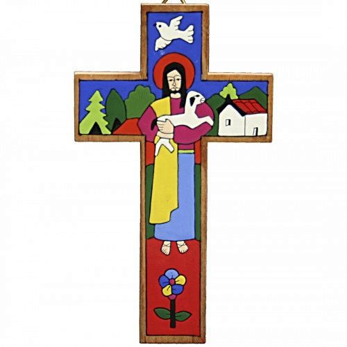 Unsere Holzkreuze werden in La Palma, El Salvador, sorgfältig von Hand bemalt. Das verwendete Kiefernholz stammt aus nachhaltiger Forstwirtschaft.