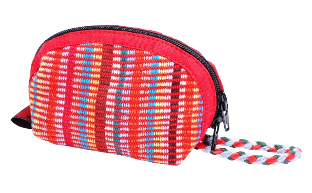 Kleines Täschen aus Baumwolle mit Reißverschluss für Utensilien - bunte rote Töne, handgewebt.