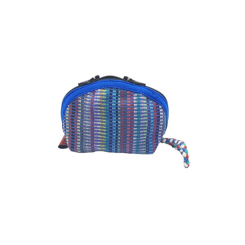 Kleines Täschen aus Baumwolle mit Reißverschluss für Utensilien - bunte Blautöne, handgewebt