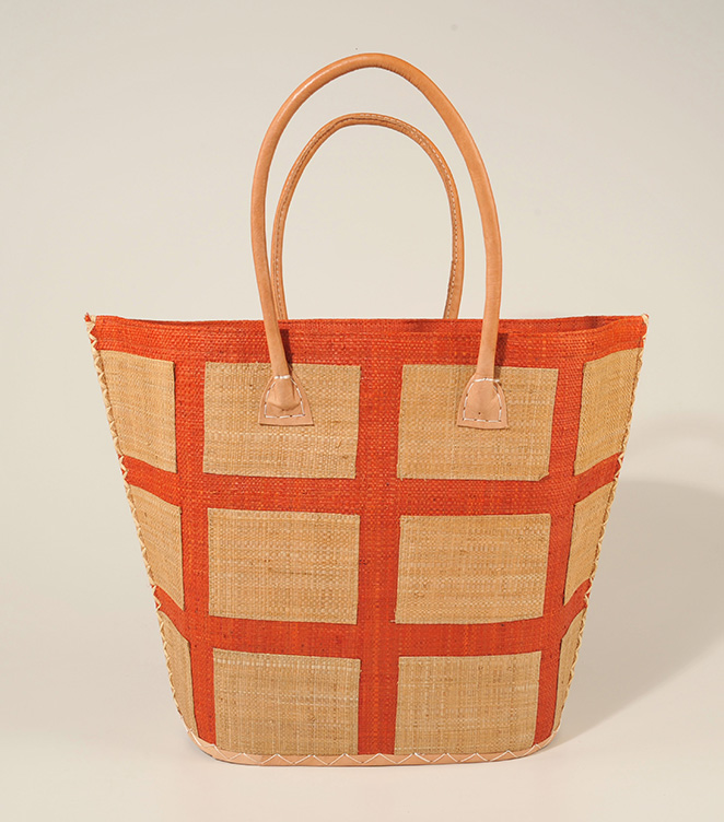 RAFFIATASCHE Rechtecke Lederhenkel