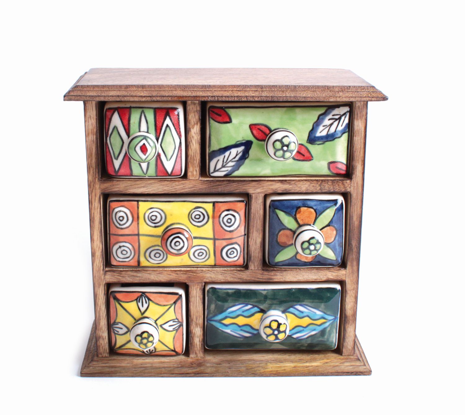 6 Schübe, Mango-Holz und Keramik, 21,5 x 9,5 x 21,5 cm