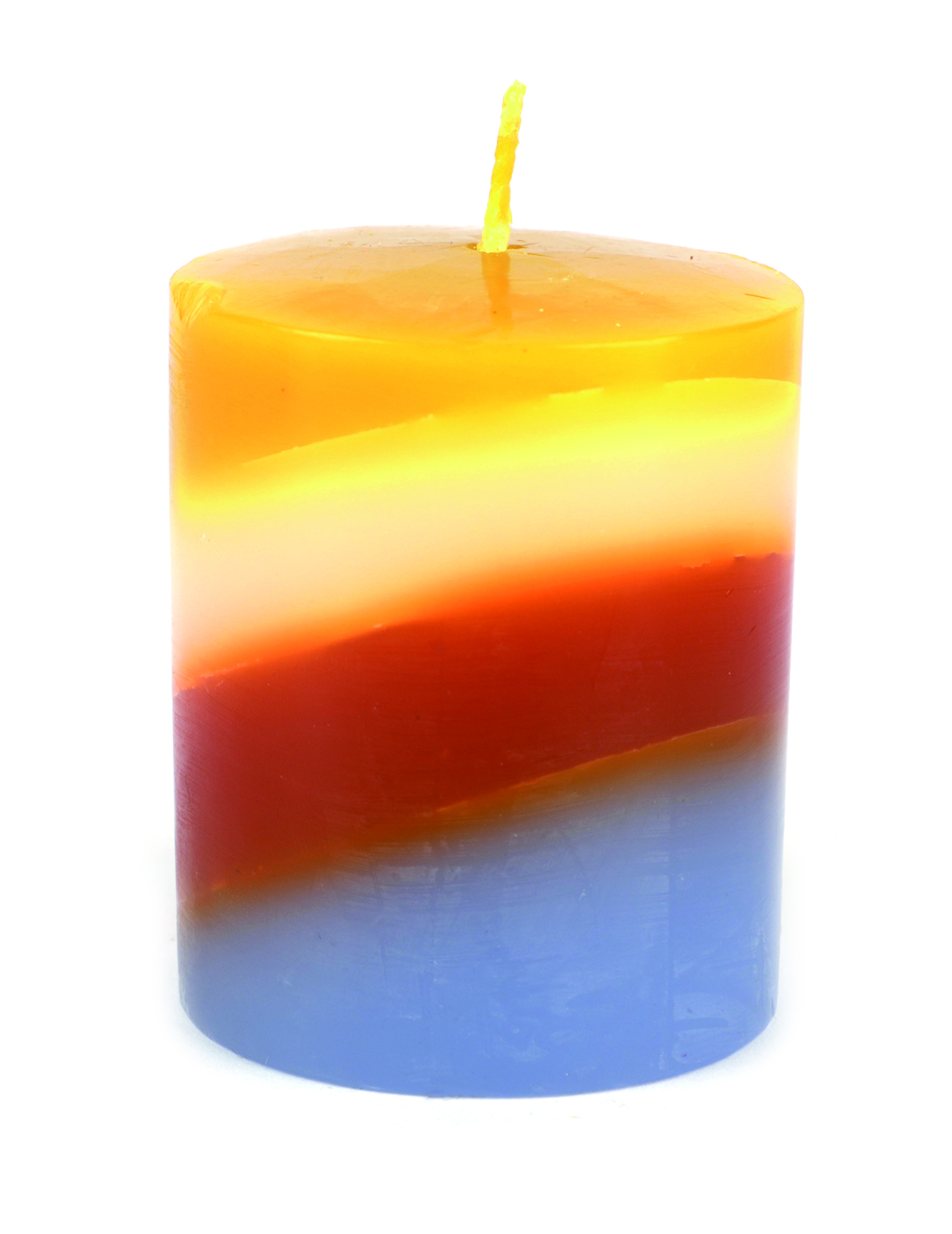 Paraffin, blau/orange/weiß/gelb, 5,5 x 7 cm, Brenndauer: ca. 30 Stunden