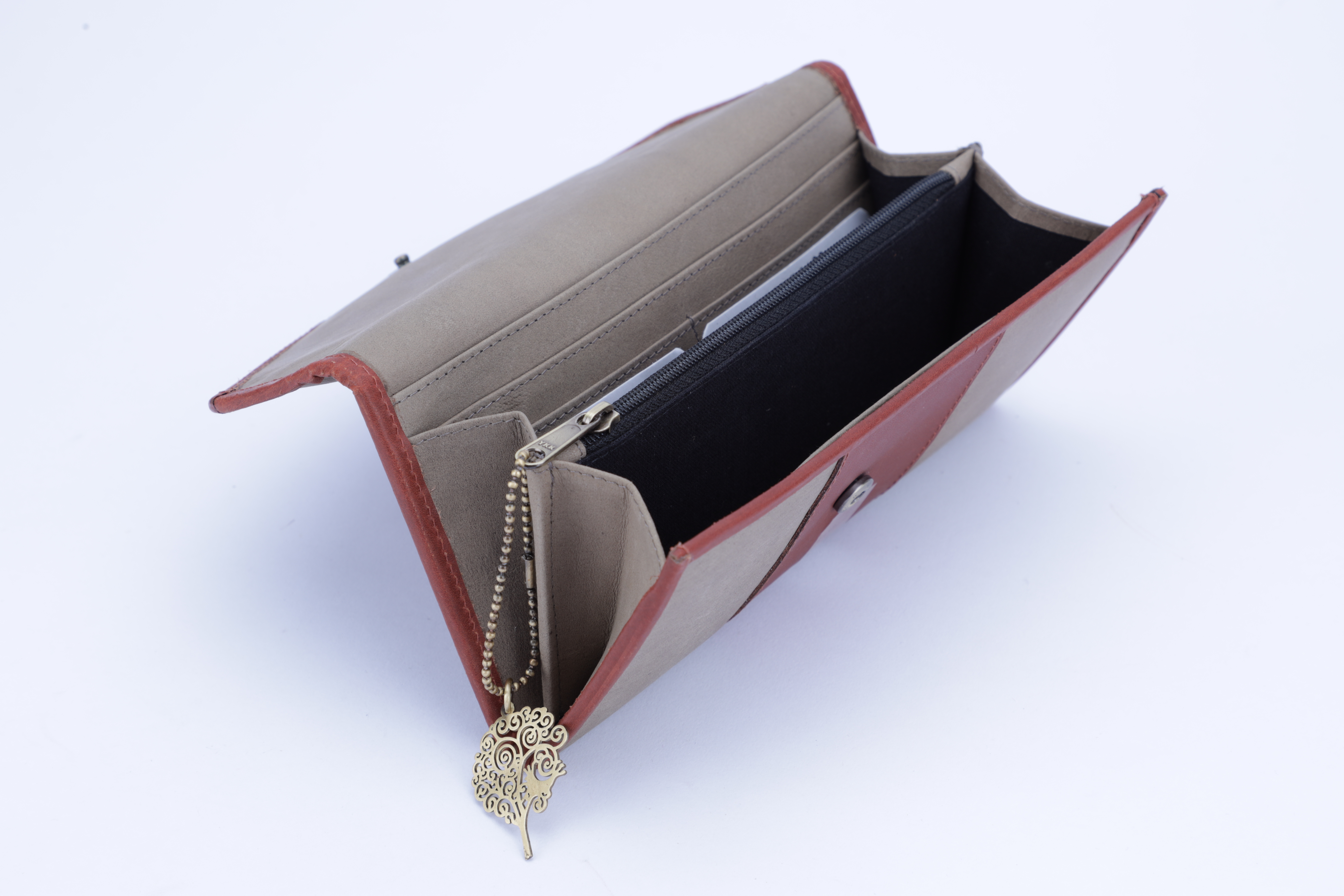 ökologisch gegerbtes Büffelleder, braun/grau, 20 x 10,5 cm