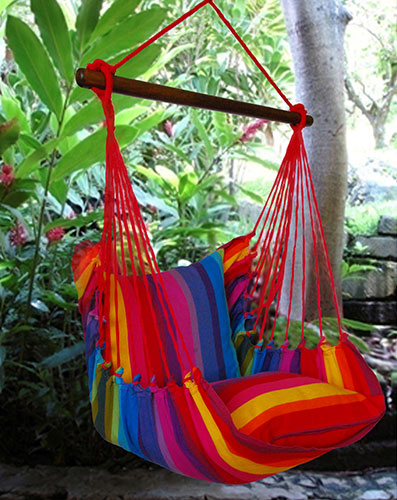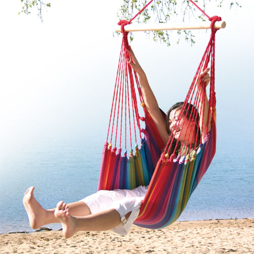 Sitzfläche: 100% Baumwolle, Stab: Holz (Pinus Insignus / Pinus sureño americano), belastbar bis 120 kg