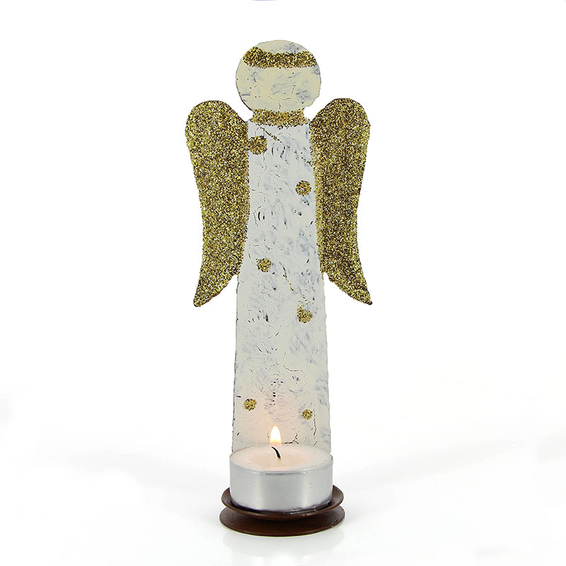 Kerzenhalter Engel, weiß mit goldenen Punkten