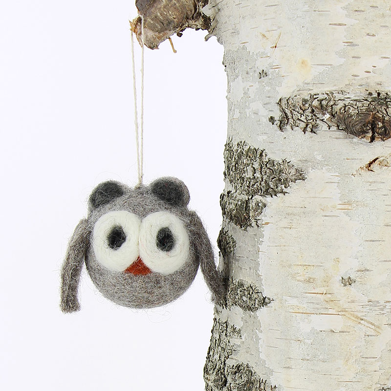 Anhänger "Wintereule", grau, Filz, H: 6 cm