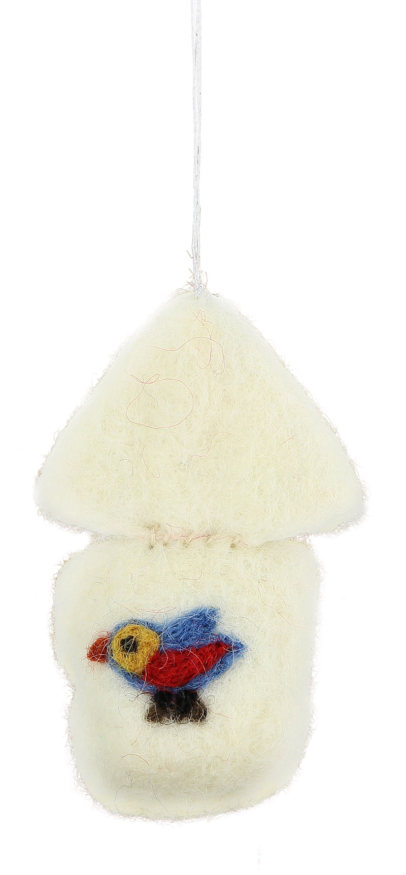 Anhänger "Vogelhäuschen", weiß, Filz, H: 7 cm
