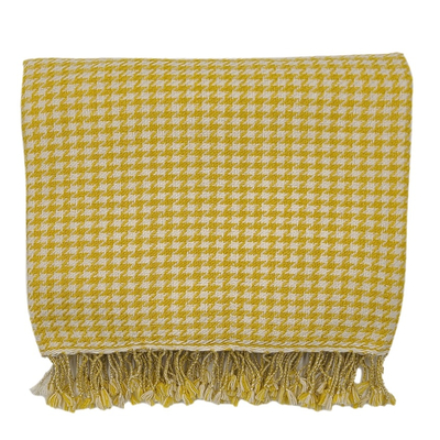 Wolldecke mit Hahnentritt-Muster - ocker/weiß