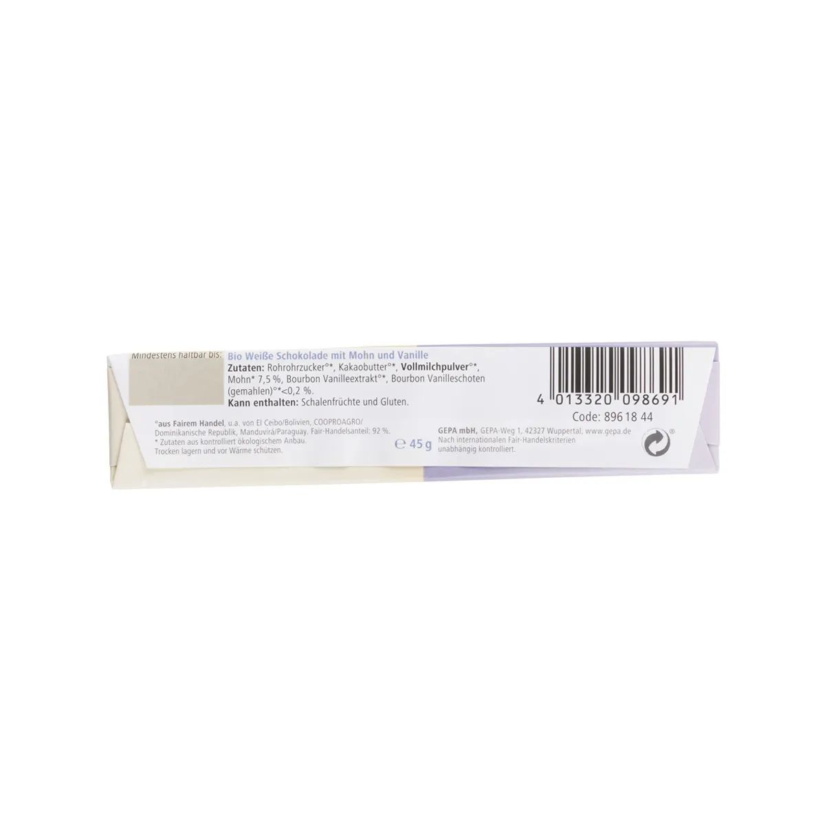 Bio weiße Schokolade mit Mohn