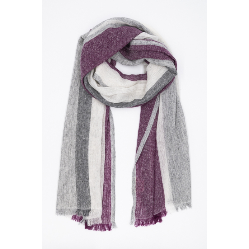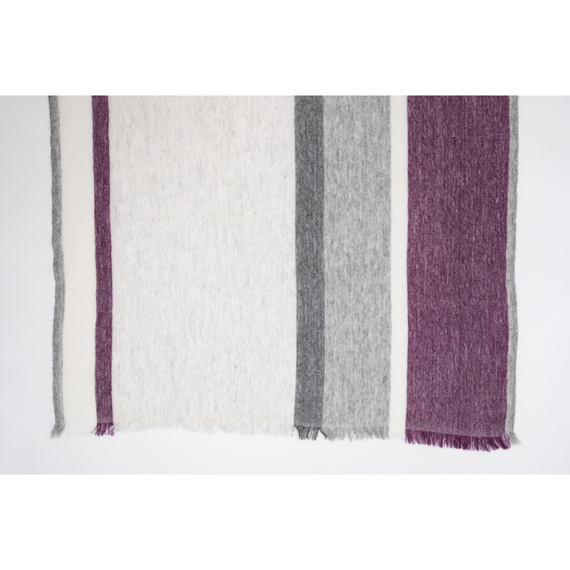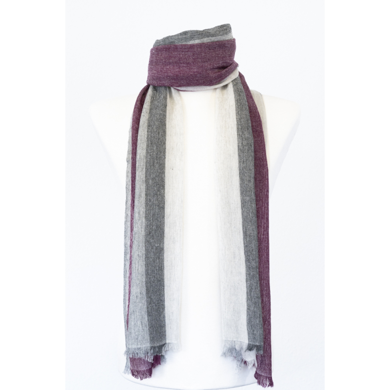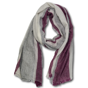 Wollschal mit Streifen, grau mit brombeerrot