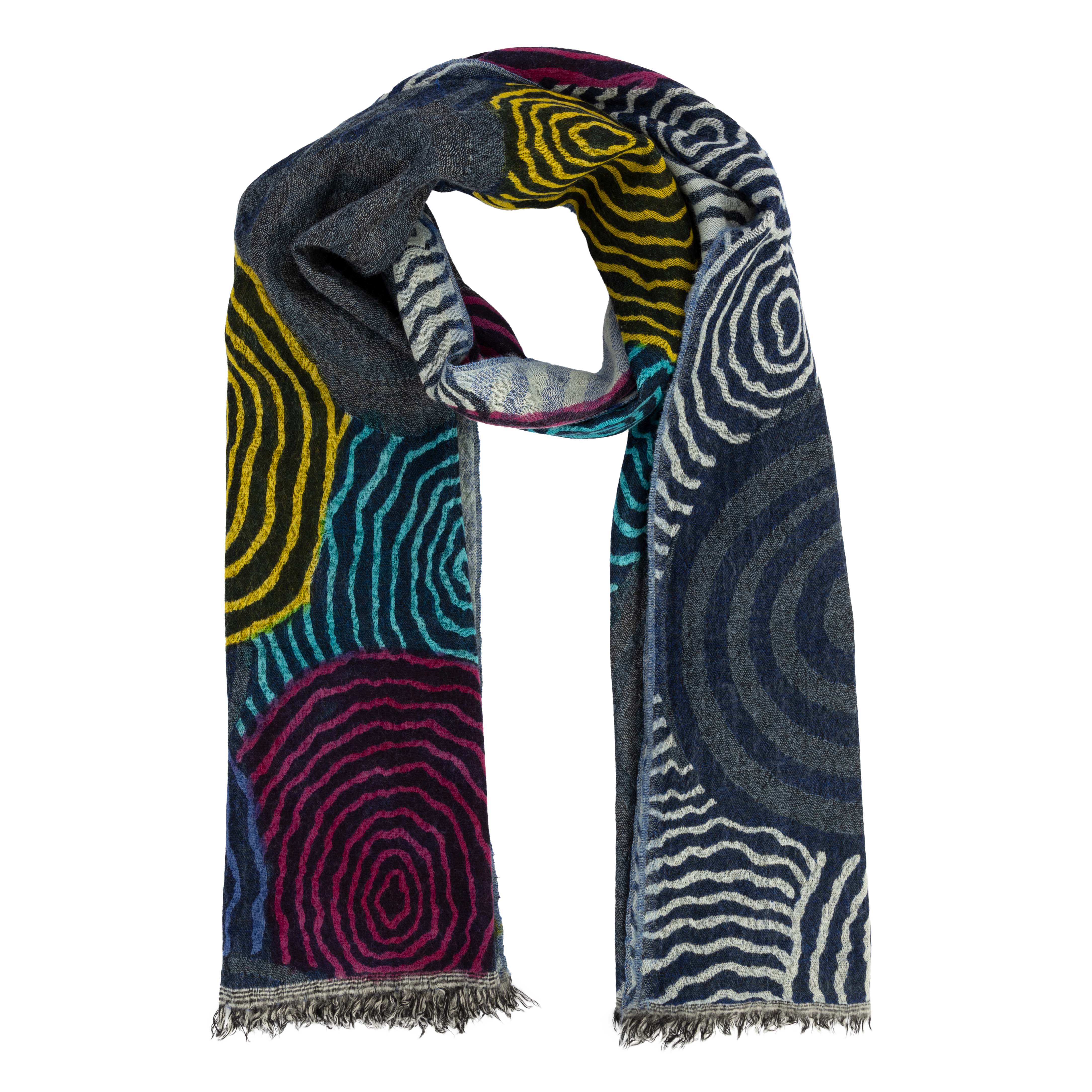 100% Merinowolle, handgewebt und -bemalt, blau, pink, gelb, 70 x 200 cm