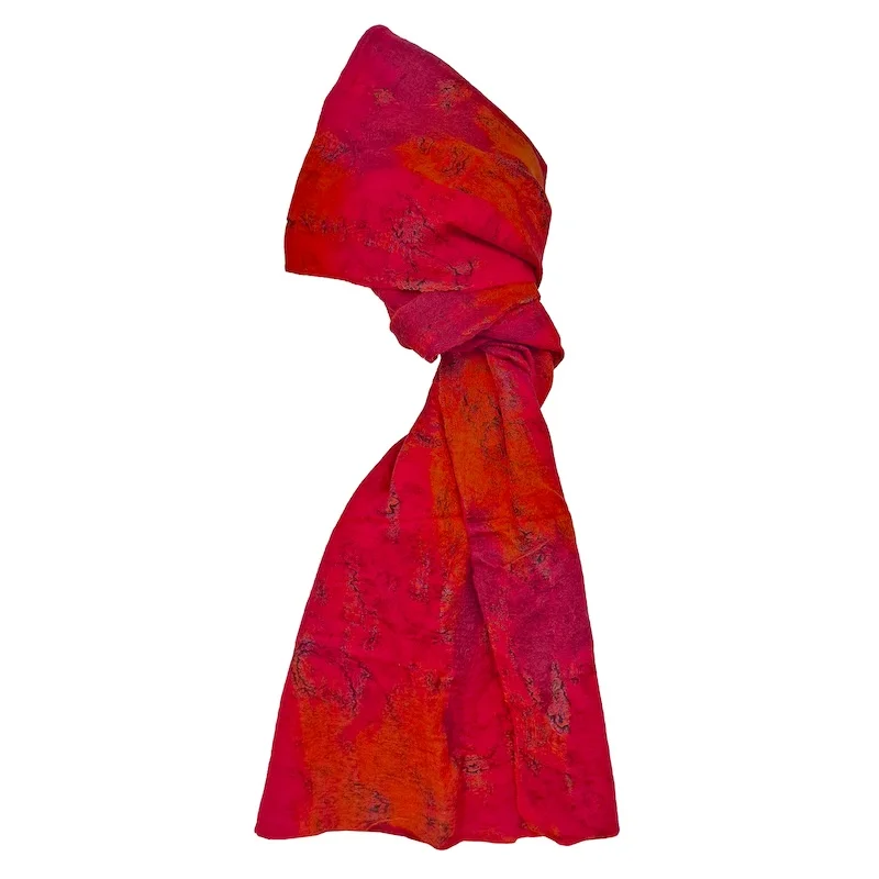 30x180cm; 60 % Schafwolle, 40% Seide (UPCYCLE-Sari-Stoffen)