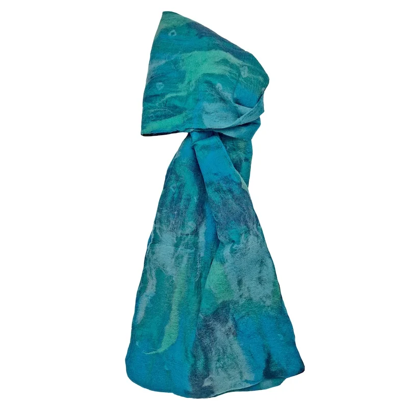 EAN: 4062279107022 Herkunft: Nepal Importeur/Lieferant: Artisan Community Empfohlener Verkaufspreis: € 25,50 brutto Artikel-Listen: Alle Artikel von Artisan Community  anzeigen.Weitere Informationen: Sari Seiden-Filz-Schals vereinen traditionelles Handwerk mit hochwertigen Naturmaterialien. Die Schals entstehen durch das Filzen feiner Wollfasern auf recycelten Seiden-Saris. Durch diesen Prozess verbinden sich die weiche Wolle und die glänzende Seide zu wärmenden, handgefertigten UNIKATEN mit außergewöhnlicher Struktur und Musterung. Warum UNIKATE? Je nach Seiden-Sari-Basis, schimmert das ursprüngliche Seidenmuster unterschiedlich durch die gefilzte Wolle hindurch. Die gezeigten Modelle dienen als Richtlinie bezüglich der Farbe. Die Lieferung kann in der Sari-Musterung von den Fotos abweichen.
