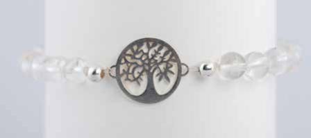 Armband, Lebensbaum, Bergkristall auf Gummi