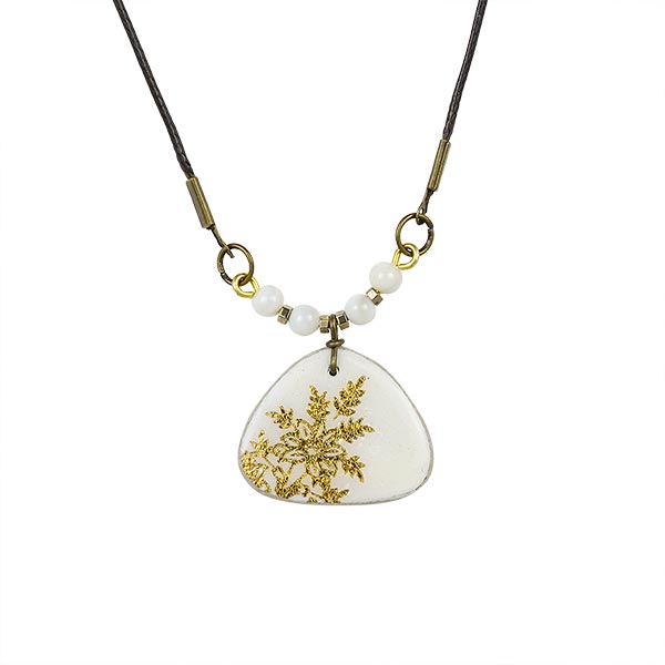 Halskette gerundet Botanisches Muster weiß-gold, Fliese