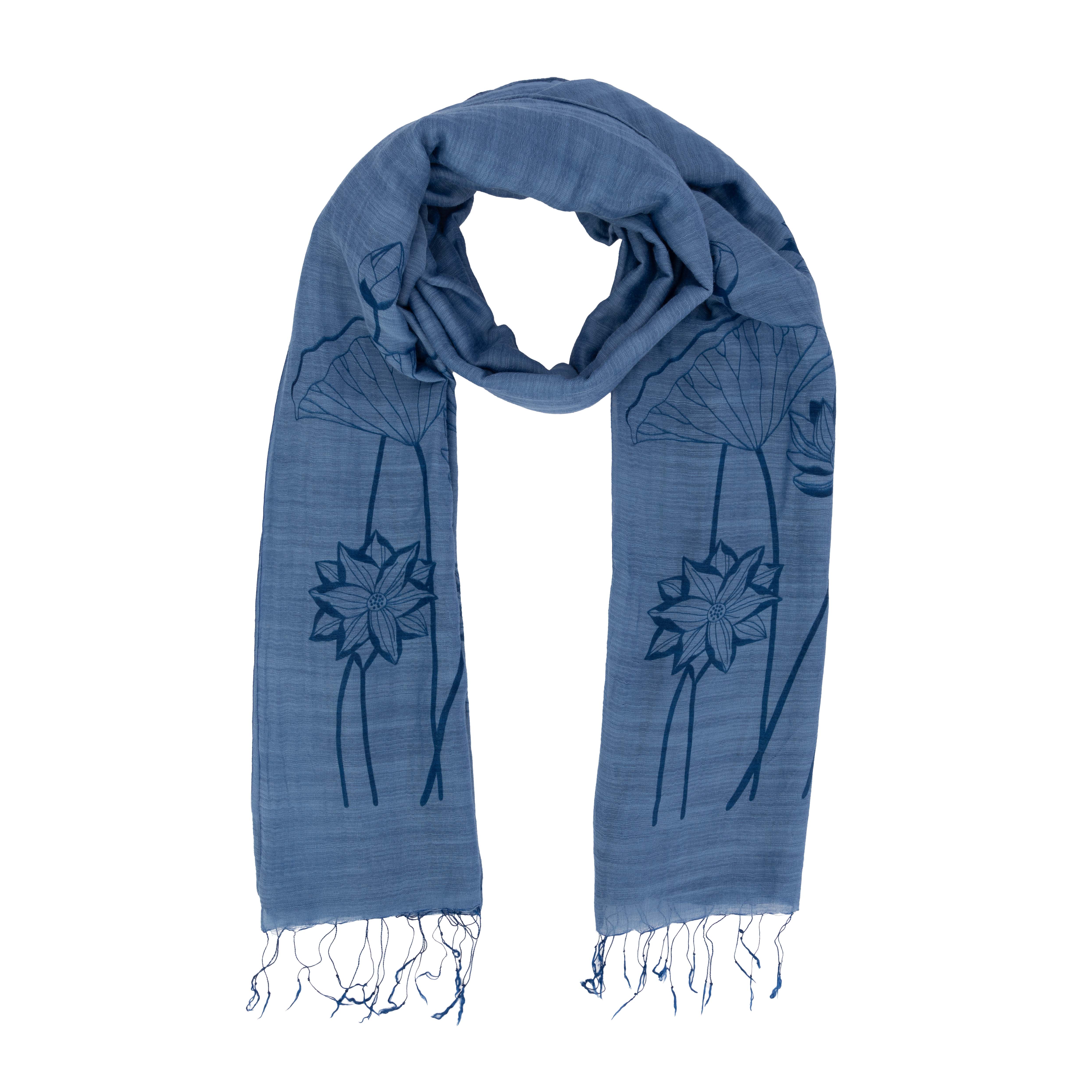 92% Baumwolle, 8% Seide, handgewebt und -bedruckt, blau, 60 x 180 cm