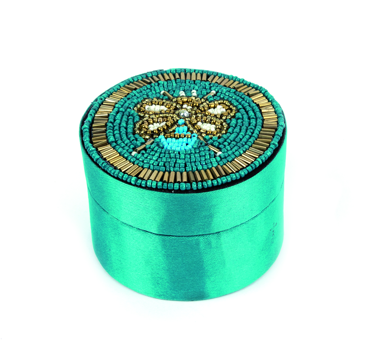 MDF, mit aufwendiger Perlenstickerei, Satinüberzug aus Polyester, türkis/weiß/gold, H 5,5 cm, Ø 7,5 cm