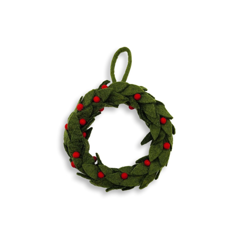 Blaetter-Kranz mit roten Beeren, ca. 22 cm