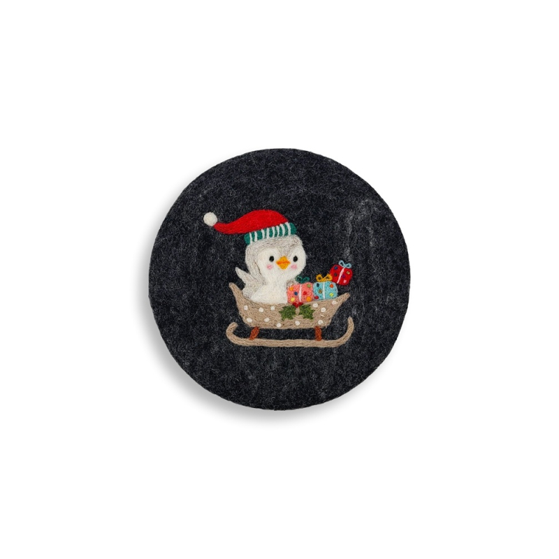 Untersetzer Pinguin mit Schlitten, anthrazit