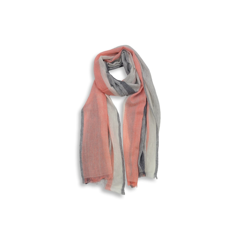 Wollschal mit Streifen (50 * 180 cm), Grau mit Lachs-Rosa