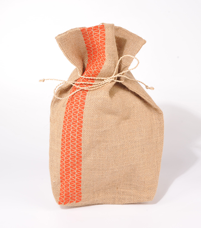 JUTEBEUTEL bedruckt Borte rot