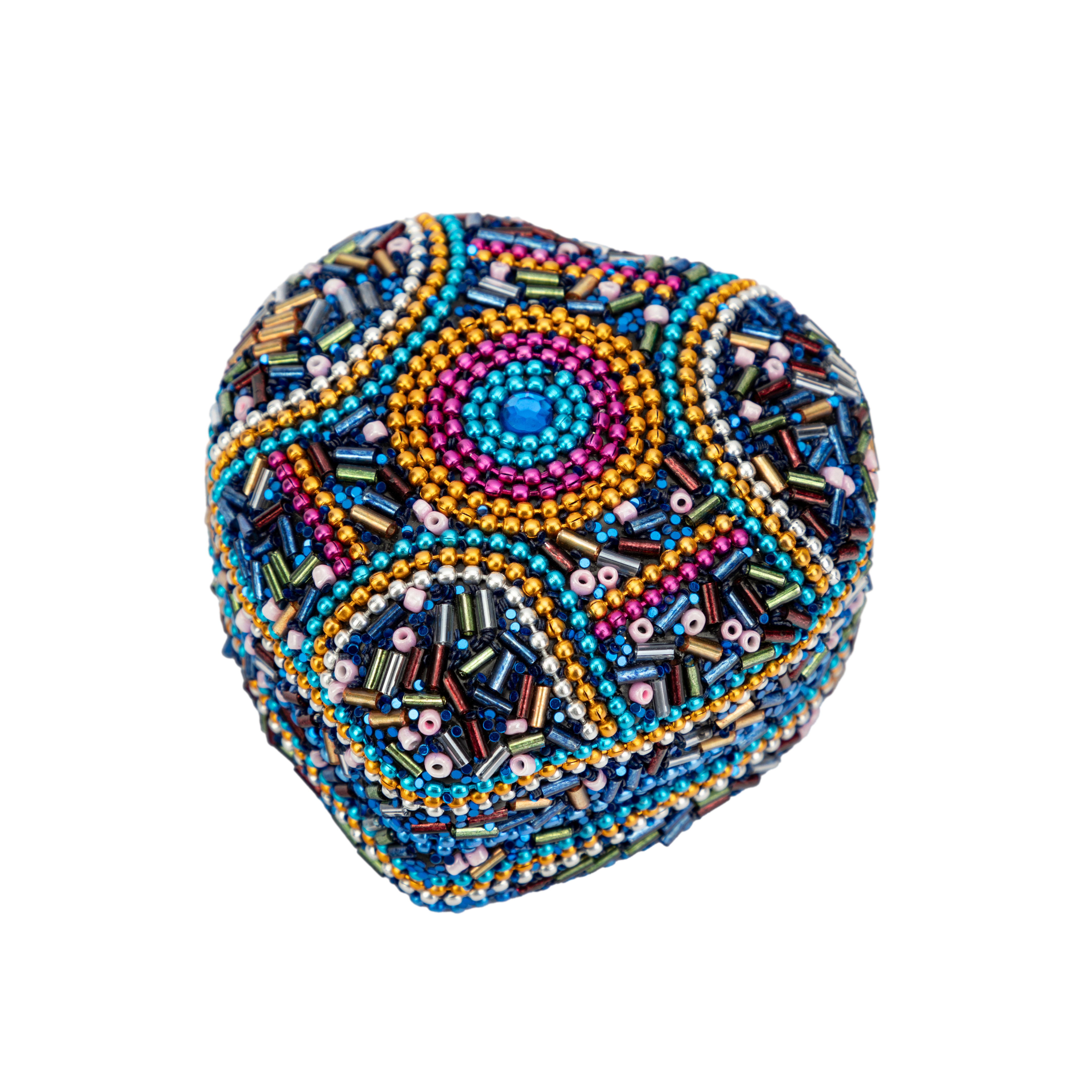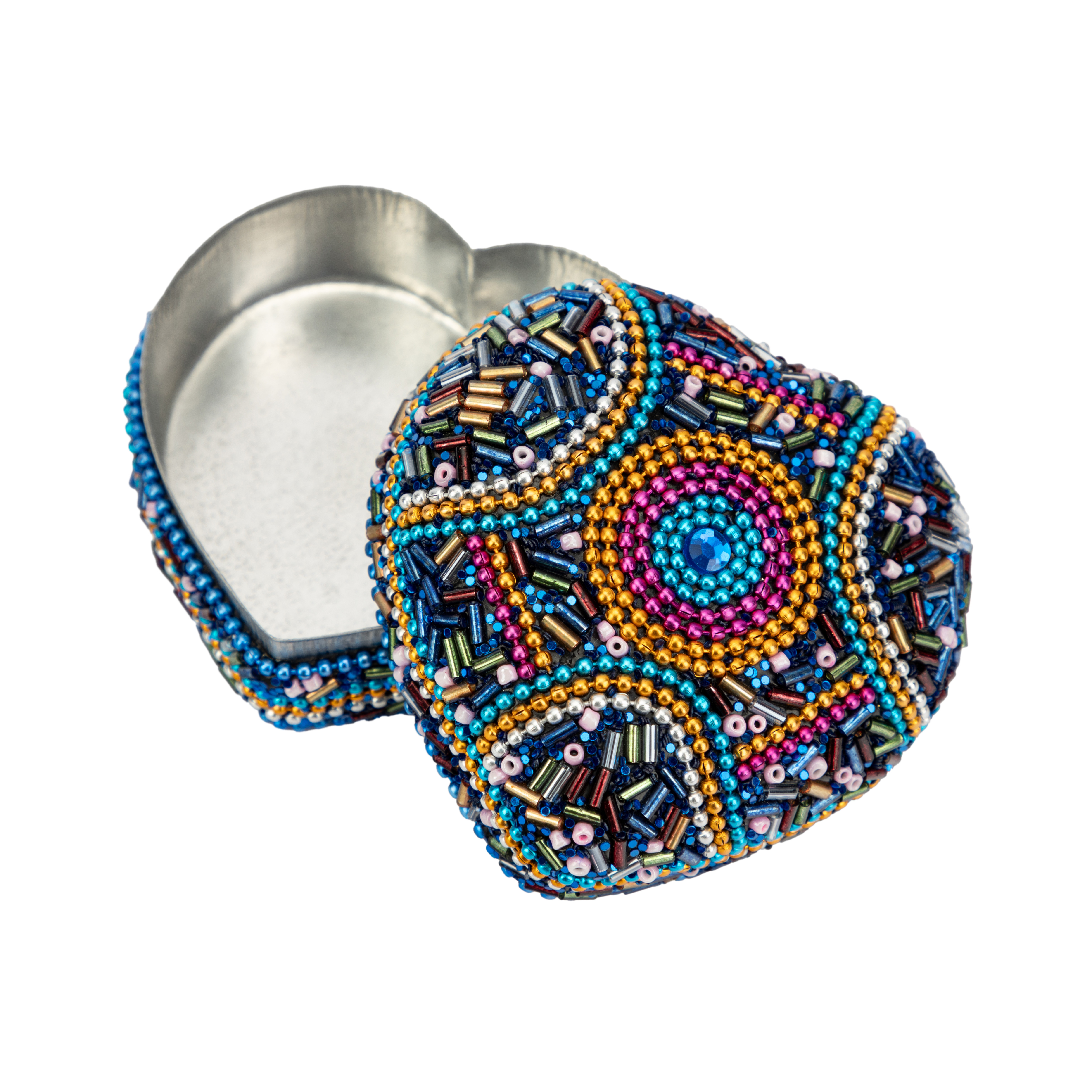Aluminium, Glasperlen, blau/bunt, herzförmig, 7,5 x 7,5 x 4 cm