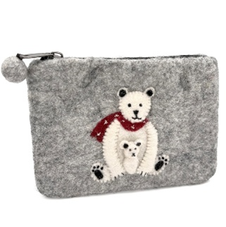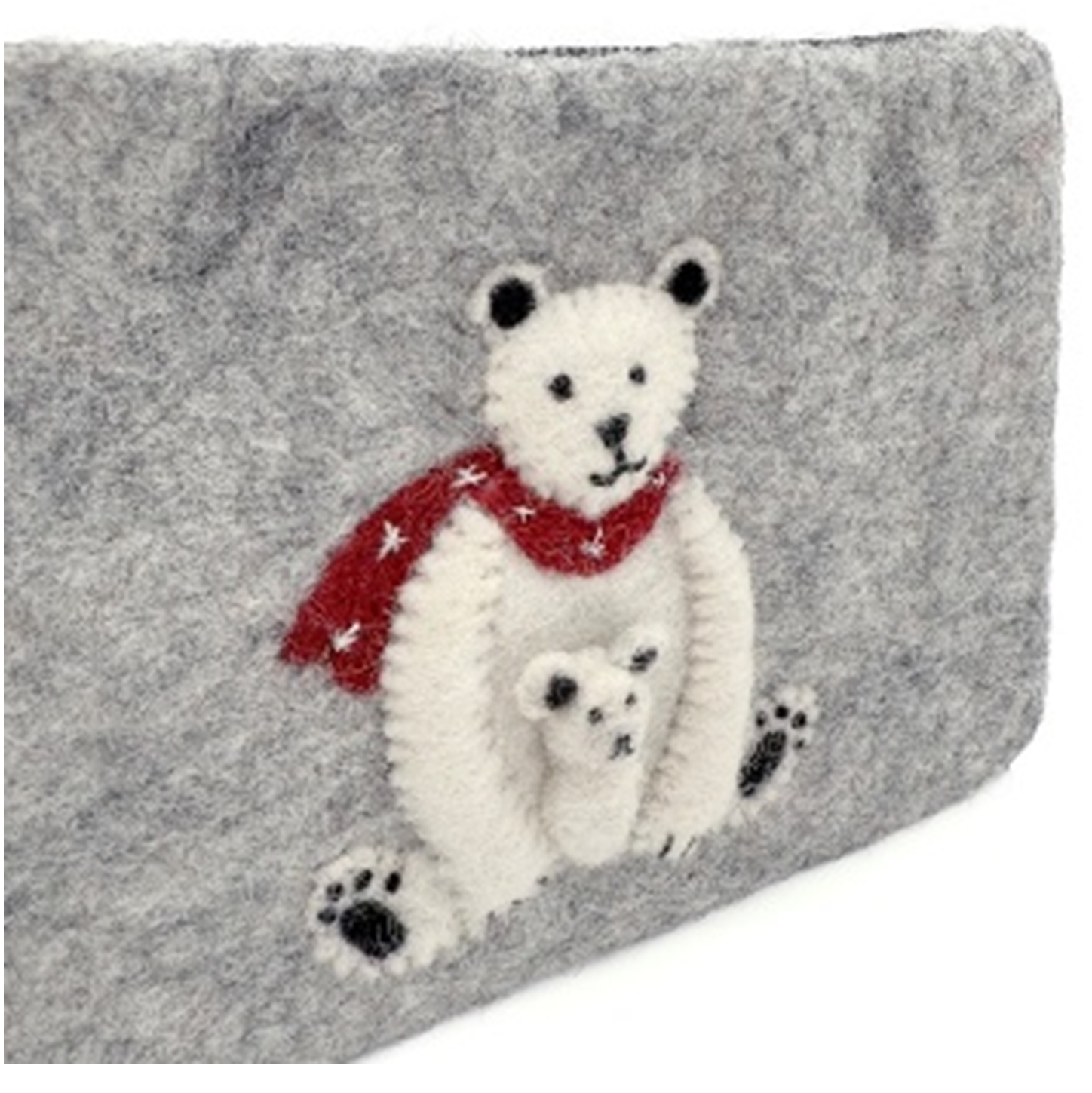 Filzbeutel Eisbaer mit Kind 19 x 13 cm