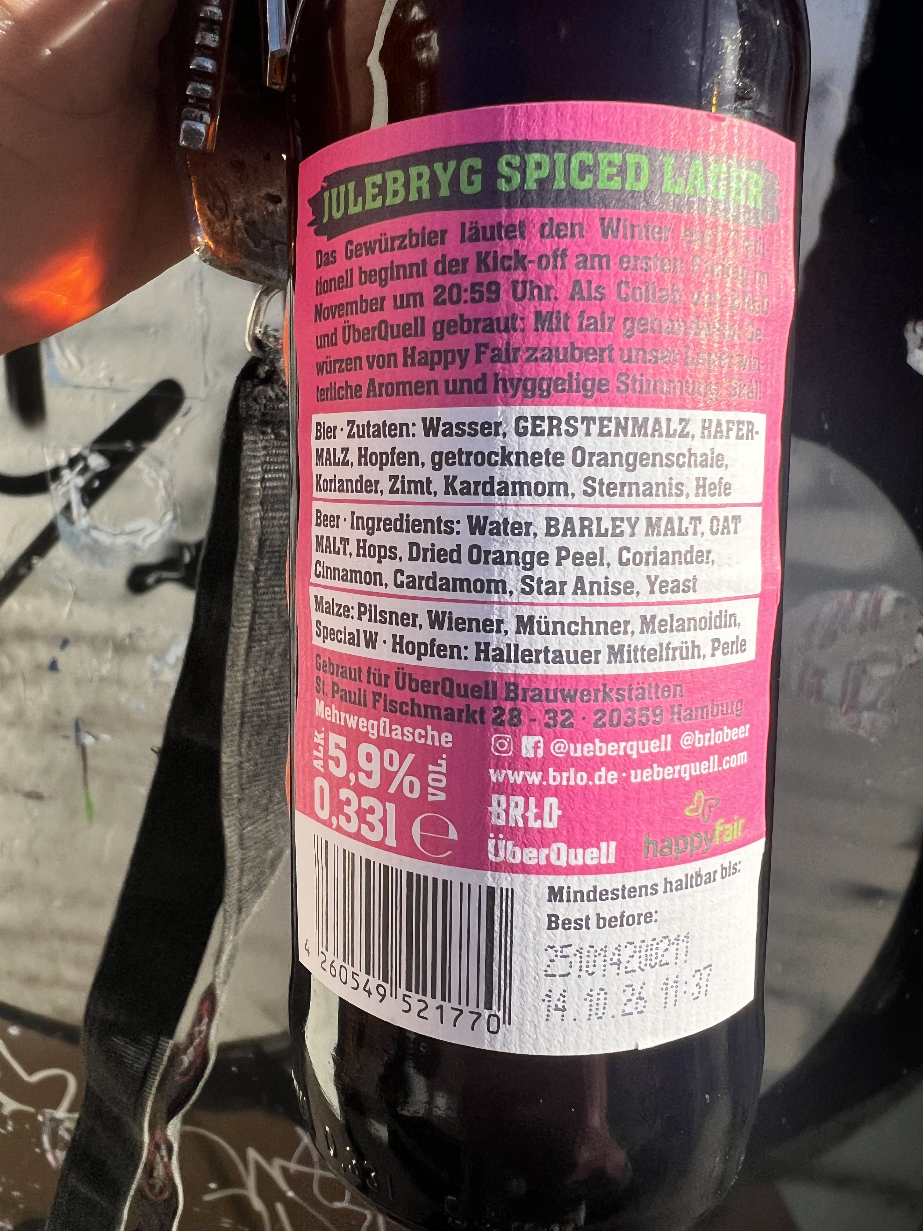 gebraut in Kooperation (Überquell Brauwerkstätten/ Süd Nord Kontor ) mit fairgehandelten Gewürzen aus dem Süd Nord Kontor (Weltpartner/GEPA).