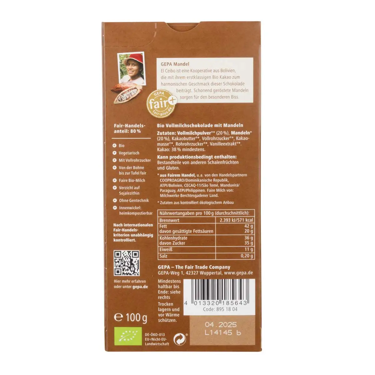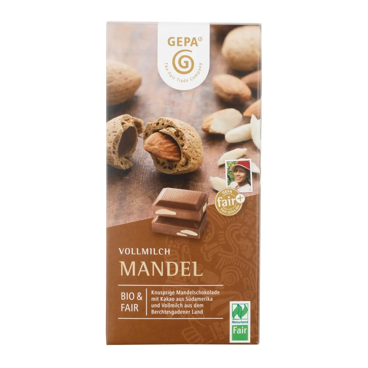 Knusprige Mandelschokolade mit Kakao aus Südamerika und Vollmilch aus dem Berchtesgadener Land.