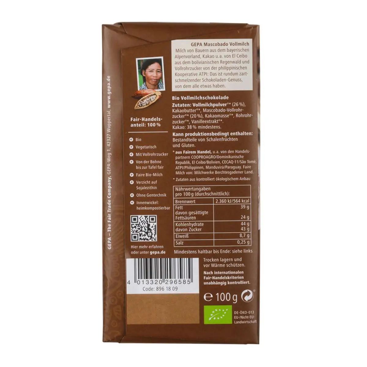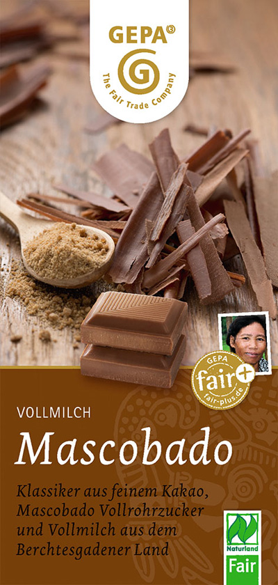 Milch von Bauern aus dem bayerische Alpenvorpand, Kakao u.a. von El Ceibo aus dem bolivianischen Regenwald und Vollrohrzucker von der philippinischen Kooperative ATC: Das ist rundum zartschmelzender Schokoladen-Genuss, von dem alle etwas haben.